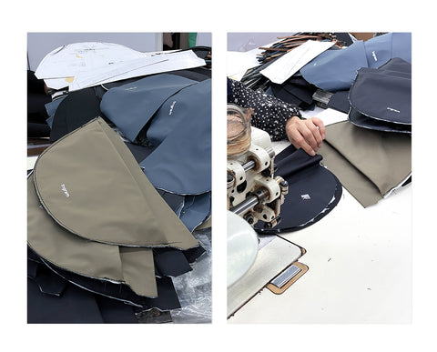 Production readily started as main material rolls and different parts started to be delivered. Soon enough, we had one piece of each bag in every colorway. How cool was that!