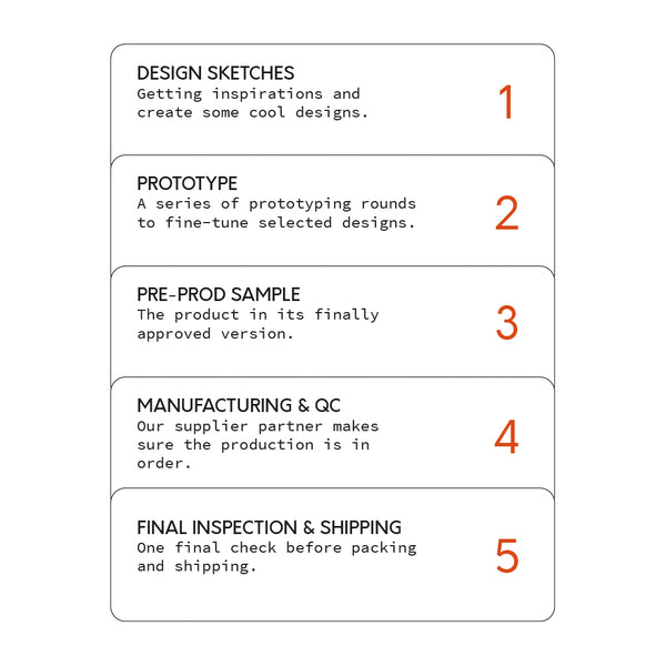 We design timeless products and drop them by Series, far from the rhythm of fast-fashion brands. That's why we care so much about product development and manufacturing process and make sure it’s done the right way. This is how it goes: